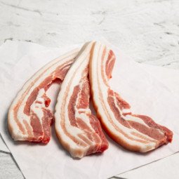 Panceta de cerdo seleccionada sin hueso, conseguida a partir de costillas trabajadas a mano, individualmente. Natural, sin aditivos. Lista para disfrutar de todo el sabor de la panceta de verdad.