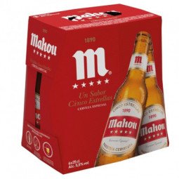 Pack de 6 botellines de 25cl de cerveza Mahou Especial Cinco Estrellas. El complemento que no puede faltar en una buena barbacoa.