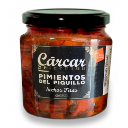 Pimientos del Piquillo asados en tiras, categoría de primera. Bote de 250 gr.