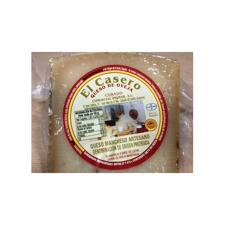 El Queso Manchego Curado El Casero tiene un halo regular, pasta color variable, desde blanco a amarillo ámbar.